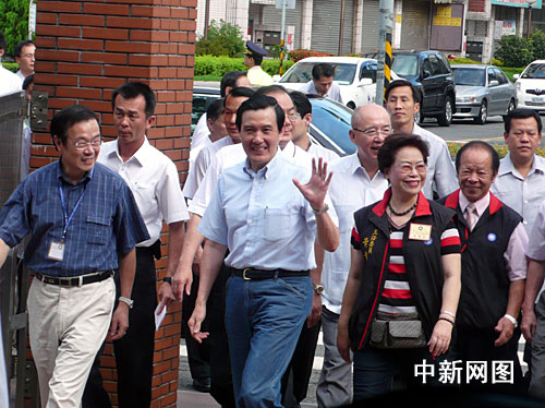 中新網(wǎng)臺(tái)北7月26日電 (記者 劉舒凌)上午8點(diǎn)半前,參與中國國民黨主席選舉的臺(tái)灣領(lǐng)導(dǎo)人馬英九在現(xiàn)任黨主席吳伯雄等黨內(nèi)人士陪同下前往設(shè)在臺(tái)北市文山區(qū)靜心小學(xué)的投票所投票。他說,我出來參選是為了承擔(dān)責(zé)任,最主要是把黨政運(yùn)作更緊密結(jié)合,讓臺(tái)灣政治事務(wù)推動(dòng)更為有效。