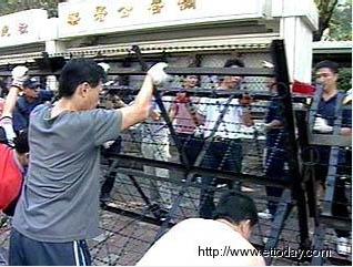 據(jù)臺(tái)灣東森新聞報(bào)道,一大早高雄“高分院”工作人員忙著在法院周邊圍墻外架設(shè)一道道路障,高雄“高分院”看起來(lái)就像是座落在銅墻鐵壁當(dāng)中,而這是為了因應(yīng)16日高雄市長(zhǎng)選舉官司二審即將宣判,高雄“高分院”為預(yù)防有心人士鬧場(chǎng)所采取的預(yù)防措施。