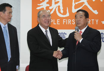 中新網(wǎng)11月19日電 親民黨主席宋楚瑜與國(guó)民黨主席吳伯雄今天(19日)共同召開記者會(huì),宣布親民黨“立委”馮定國(guó)退出區(qū)域“立委”選舉。但黨籍“立委”沈智慧等仍不愿退選,宋楚瑜表示,明天為“中選會(huì)”受理“立委”參選人登記最后一天,國(guó)親一定努力整合到最后一刻,不放棄任何機(jī)會(huì)。