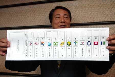 中新網(wǎng)12月21日電 臺灣當局“中選會”今天公布有史以來首張彩色選票樣張,上面印有十二個參選不分區(qū)“立委”的政黨名稱及其政黨標章。