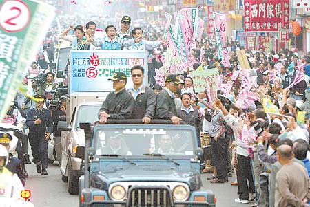 陳水扁這場(chǎng)選舉造勢(shì)秀,只有短短幾分鐘的行程,卻讓臺(tái)南市警方如臨大敵,一早就動(dòng)員大批警力,將周邊道路整個(gè)“掃過一次”,還要求附近所有設(shè)有監(jiān)視器的商家把鏡頭轉(zhuǎn)向,調(diào)向大馬路。臺(tái)南市警方投入上千名警力,采取“三步一崗、五步一哨”方式進(jìn)行安全維護(hù)工作,并穿插便衣刑警,全程監(jiān)控。