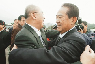 據(jù)臺灣《聯(lián)合報》報道,吳伯雄與宋楚瑜一見面即熱情擁抱,相互致意。媒體追問國親是否有合并計劃。宋楚瑜表示,國親有共同理念,“將以實際行動證明給大家看!眳遣蹌t語帶玄機地說,“請大家拭目以待!
