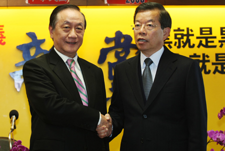 深入深藍(lán)陣營(yíng) 謝長(zhǎng)廷拜會(huì)新黨主席郁慕明(圖)