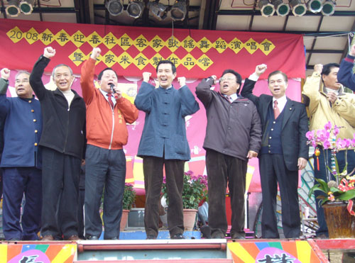隨后馬英九到路口廣場與鄉(xiāng)親同樂,與大家一起高歌“我們都是一家人”,馬英九開始發(fā)放裝有巧克力金幣的小紅包,馬英九希望大家能在新的一年“萬馬奔騰、曙光再現(xiàn)”。