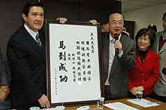 馬英九訪"臺(tái)聯(lián)"秘書長(zhǎng) 錢橙山送"馬到成功"(圖)