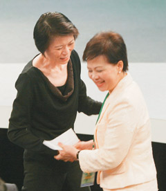 相對(duì)于周美青,長(zhǎng)年跟著謝長(zhǎng)廷南征北討選舉場(chǎng)的游芳枝,一身粉紅色套裝現(xiàn)身婦女座談會(huì),比起周美青職業(yè)婦女形象,她多了些雍容的貴婦氣質(zhì),卻又顯得溫柔婉約,提起各種政見(jiàn)應(yīng)答如流,熟稔的程度絲毫不輸謝長(zhǎng)廷。