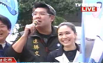 中新網(wǎng)3月20日電 據(jù)臺灣TVBS報道,選戰(zhàn)最后關(guān)頭,連勝文才剛剛坐滿月子的太太蔡依珊,今天產(chǎn)后第一次露面,為馬英九拜票。