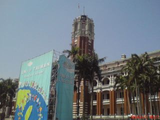 "公投"遭否決 臺"總統(tǒng)府"拆"入聯(lián)"宣傳牌樓(圖)