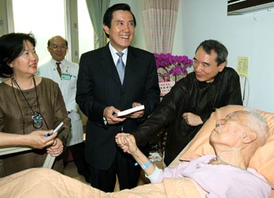 馬英九探視柏楊 柏楊向馬作揖恭賀并送新著