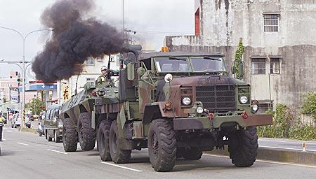 演習啟動后,臺軍憲兵所屬裝甲車立刻駛出營區(qū),這也是“玉山兵推”實行以來首度有裝甲車在白天開入市區(qū)。