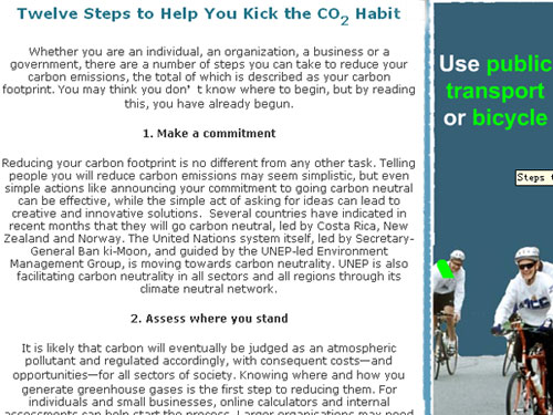 6月5日是聯(lián)合國世界環(huán)境日。據《聯(lián)合報》報道,聯(lián)合國日前已經特地在官方網站鼓勵世人以五種方式響應環(huán)保節(jié)能。特別的是,網站上提倡以大眾交通工具和自行車取代開車,采用的廣告主角是馬英九。