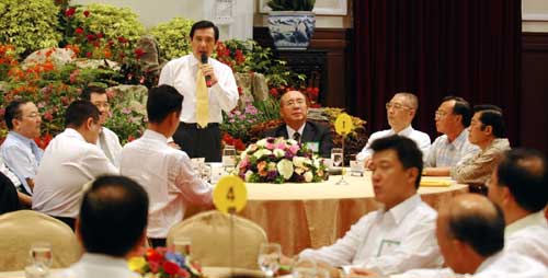 馬英九、蕭萬長昨天和國民黨主席吳伯雄等黨務(wù)系統(tǒng)人士座談。(“中央社”圖)