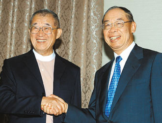 王建煊(左)拜會(huì)錢(qián)復(fù)(右)。(圖:臺(tái)灣《聯(lián)合晚報(bào)》)