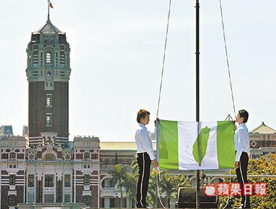 臺(tái)灣《蘋果日?qǐng)?bào)》9日?qǐng)?bào)道,臺(tái)灣“獨(dú)派”團(tuán)體“9.08臺(tái)灣國(guó)”聯(lián)盟昨天在臺(tái)北市凱達(dá)格蘭大道上舉行升“臺(tái)灣國(guó)旗”鬧劇,并由“臺(tái)灣公民社”秘書(shū)長(zhǎng)廖林麗玲宣讀所謂的“臺(tái)灣國(guó)宣言”,叫囂終結(jié)“中華民國(guó)體制”,邁向“臺(tái)灣建國(guó)”之路。