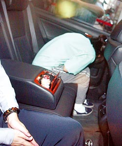 臺灣檢方特偵組14日提訊在押的前陳水扁任內(nèi)辦公室出納陳鎮(zhèn)慧及陳水扁辦公室主任林德訓厘清案情;陳鎮(zhèn)慧還押看守所時在車內(nèi)彎腰閃避媒體鏡頭。(圖:臺灣《中國時報》)