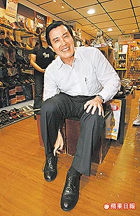 馬英九買皮鞋,鼓勵民眾多消費(fèi)。(圖:臺灣《蘋果日報(bào)》)