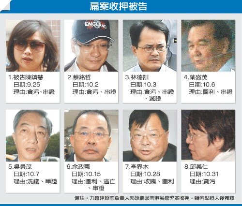 據(jù)了解,8名在押被告只有陳鎮(zhèn)慧安排在女所的禁見房;其余7人,看守所考慮同案被告不要關(guān)在同一層,因此將蔡銘哲、葉盛茂、余政憲、李界木4人,安排在忠三舍;林德訓(xùn)、吳景茂、邱義仁,則安排住進(jìn)孝三舍,以方便管理。兩棟樓雖然只相隔數(shù)十公尺,卻絕不可能見面。