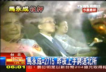 據(jù)臺(tái)灣TVBS報(bào)道,檢方查出,馬永成涉嫌協(xié)助扁家詐領(lǐng)千萬(wàn)元新臺(tái)幣的機(jī)要費(fèi),觸犯侵占和詐取公有財(cái)務(wù)罪,涉嫌重大且有串證之虞,聲押獲準(zhǔn)。馬永成進(jìn)入看守所后將沒(méi)有名字,編號(hào)2715,與一名偽造文書(shū)的嫌犯同牢房。