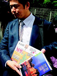 陳水扁辯護律師鄭文龍,13日上午帶了三本書說要送給陳水扁閱讀。圖片來源:臺灣《聯(lián)合晚報》