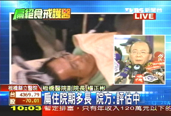 陳水扁生命現(xiàn)象漸趨穩(wěn)定,仍得住院觀察,究竟會住多久,醫(yī)院話說的很保守,強(qiáng)調(diào)無灌食計(jì)劃。圖片來源:臺灣TVBS