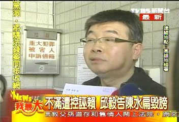 邱毅日前指陳水扁利用專機(jī),把巨額款項運(yùn)送到帕勞分行,陳水扁辦公室反駁是胡亂指控,邱毅今天南下高雄地檢署,控告陳水扁。