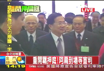 陳水扁因涉及多起弊案于11月12日被收押,12月12日特偵組依貪污、洗錢等罪起訴陳水扁等人后,案件移審法院,檢方并向法院聲請繼續(xù)羈押陳水扁。但是臺北地院審理后于13日凌晨當庭釋放陳水扁,而且不用具保,僅限制出境、出海、住居。
