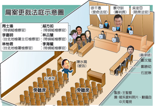 據(jù)了解,特偵組對于審判長換由蔡守訓后,重燃羈押陳水扁的信心,因此相當慎重,參與羈押庭的臺北地檢署二位檢察官,上午也前往特偵組開會,針對下午的攻防內(nèi)容,進行陣前沙盤推演,希望能達成押扁的任務。