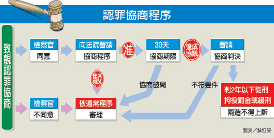 何謂“認(rèn)罪協(xié)商”?簡單說就是被告認(rèn)罪后,與檢察官、法官針對罪名、刑度等相關(guān)事項進(jìn)行協(xié)商的刑事訴訟制度。在認(rèn)罪協(xié)商程序中,被告須與檢察官協(xié)商罪名、刑度后,向法院陳報,經(jīng)法院同意下開庭制作“協(xié)商筆錄”,即完成協(xié)商程序,案件就不能再上訴,宣告定讞。不過,公訴檢察官在與被告協(xié)商前,必須先征詢偵查檢察官的意見,甚至還要經(jīng)檢察長批示準(zhǔn)許后,才能實施。