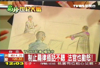 TVBS記者口述:“關(guān)于陳水扁的庭期里面,這一次應該是最火爆的一次,當時檢察官他是站起來,他的雙手指著陳水扁,昨天的身體狀況我們也發(fā)現(xiàn)了,確實他是不太好,但是為什么律師要發(fā)言那么久,這個時候律師鄭文龍把手舉起來一直搖手說,沒有啊、沒有啊!