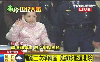 中新網(wǎng)3月3日電 據(jù)臺灣TVBS報(bào)道,陳水扁夫人吳淑珍3日下午在兒子陳致中的陪同下再度出庭,除了今天氣溫比較低,會不會對吳淑珍身體狀況造成影響之外,今天在庭上,吳淑珍會不會幫丈夫陳水扁求情解除羈押,外界也很關(guān)注。以下為法庭攻防實(shí)錄: