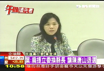 人在臺北看守所的陳水扁,再度介入民進黨臺南縣長選舉!“立委”葉宜津證實23日她去看扁時,阿扁提議要挺她選縣長,若當選辭去“立委”之后,阿扁要來補選這席“立委”,這樣的交換條件,葉宜津說,她沒有答應。葉宜津表示,“(扁說)我這一席‘立委’空出來以后讓他選,陳唐山就會知難而退,陳水扁提出這一點以后,我就告訴他這不是我能決定的!