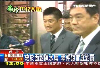 辜仲諒坐在證人席上、蹺著二郎腿等待庭訊開始,看似輕松的外表下,其實(shí)內(nèi)心有點(diǎn)忐忑緊張,當(dāng)陳水扁踏入法庭時(shí),兩人都刻意避開眼神交集。
