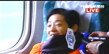 吳淑珍上一次離開臺(tái)北應(yīng)該是3年前陳致中要到黃睿靚家下聘時(shí),今天第一次搭乘高鐵,吳淑珍臉色有些蒼白,不過(guò)看起來(lái)神情相當(dāng)愉悅,搭乘高鐵約兩個(gè)小時(shí)車程中,難得和記者面對(duì)面聊天。