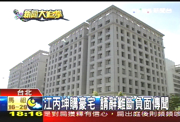 據(jù)臺灣TVBS報道,;鶗麻L江丙坤請辭當天,傳出原本有媒體要再報導他的負面消息,而這負面消息就是江丙坤家族買豪宅,江丙坤非常在意,盡管請辭心意堅決,還是親自出面說明買屋經(jīng)過,而且強調(diào)買賣資金沒有問題,是他跟子女想要重溫一家人聚在一起的感覺,才陸續(xù)把原有的房產(chǎn)賣出,合資購買新屋,不過江丙坤說,其實他現(xiàn)在住的房子,比新買的房子還要好。