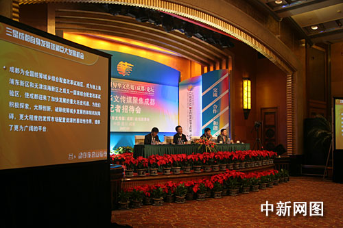 [中共成都市委常委、宣傳部長郝康理]: 各位新聞界的朋友們,女士們,先生們,大家下午好。時(shí)值金秋九月,美麗的蓉城榮幸地迎來了第四屆世界華文傳媒論壇的舉行。為了讓廣大海外媒體更好地了解成都,今天我們專門在此舉行“世界華文傳媒聚焦成都”專題記者招待會(huì),由成都市領(lǐng)導(dǎo)向各位記者介紹成都市的基本情況,以及成都市舉辦本屆世界華文傳媒論壇的相關(guān)情況。出席今天記者招待會(huì)的領(lǐng)導(dǎo)有:中共成都市委副書記、成都市市長葛紅林先生;成都市委常委孫平先生,成都市副市長何華章先生,以及成都市發(fā)展改革委員會(huì)、投資促進(jìn)委員會(huì)、商務(wù)局等部門的負(fù)責(zé)人。除了參加本屆論壇的海外記者出席記者招待會(huì)外,還有國內(nèi)外眾多的媒體記者參加招待會(huì),在這里向大家表示熱烈的歡迎。為了讓第一次光臨成都的媒體朋友充分了解成都,首先請(qǐng)大家看張藝謀導(dǎo)演拍攝的宣傳片,《成都—一座來了就不想離開的城市》。 |