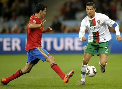 第12分鐘西班牙通過戰(zhàn)術(shù)角球發(fā)動(dòng)攻勢(shì),托雷斯的掃射稍稍高出。第20分鐘,葡萄牙打出反擊,蒂亞戈的遠(yuǎn)射也被卡西利亞斯奮力撲出,隨后卡西利亞斯反應(yīng)神速將球破壞,沒有給阿爾梅達(dá)補(bǔ)射的機(jī)會(huì)。