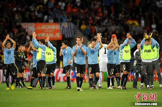 “如果要輸球,以這種方式輸球倒可以接受,”塔巴雷斯說!拔覀冇肢@得了體現(xiàn)我們?yōu)趵缛艘庵镜臋C會,超越我們的極限而與對手戰(zhàn)成勢均力敵!痹1/4決賽中,烏拉圭隊曾有神奇表現(xiàn),前鋒蘇亞雷斯在與加納隊比賽的最后一分鐘用手將對方的必進球拍出,他被出示紅牌罰下并送給對手一個點球。不過加納隊的前鋒吉安踢飛了點球,烏拉圭隊最終在點球大戰(zhàn)中4比2擊敗加納隊晉級。
