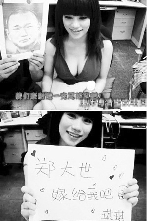 雖然朝鮮隊早已經(jīng)從南非世界杯打道回府,但朝鮮隊極具個性的球星卻贏得中國粉絲的狂熱追捧。近日網(wǎng)絡(luò)上瘋傳一條中國美女向鄭大世求婚的視頻,琪琪在視頻中表態(tài),要為鄭大世生一支足球隊。