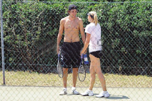 近日,網(wǎng)壇美女莎拉波娃在歐洲旅行度假,陪伴她的除了主要贊助商的官員外,還有她的男朋友、湖人后衛(wèi)薩沙·武賈西奇,兩人一起在意大利進行了一段浪漫之旅。在身高2米01的武賈西奇陪襯下,身高1米88的莎拉波娃終于看起來沒那么高大了。莎拉波娃一向以刻苦、專注著稱,即使在度假期間,也不忘練球,而她的男友武賈西奇也十分體貼,甘心在炎熱的天氣下當(dāng)女友的陪練,由于氣溫過高,武賈西奇半裸上陣,兩人在這樣的高溫天練球并不覺得辛苦,有說有笑,非常開心,看來兩人之間的愛火要比氣溫更熱烈。