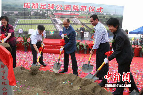 中新網(wǎng)成都7月21日電(記者 楊杰) 21日下午,預(yù)計投資3000萬元人民幣的成都足球公園正式奠基。亞足聯(lián)主席哈曼專程蒞臨現(xiàn)場,參加了奠基儀式。