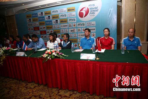 中新網(wǎng)成都8月5日電(楊杰 張浪)2010世界女排大獎(jiǎng)賽成都賽區(qū)將于6日下午在荷蘭與泰國的較量中拉開帷幕。5日下午,抵蓉參賽的波多黎各、泰國、荷蘭和中國隊(duì)的主教練接受了媒體記者采訪,均表示要積累經(jīng)驗(yàn),全力一戰(zhàn)。