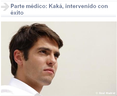 中新網(wǎng)8月6日電 北京時(shí)間昨晚,西班牙皇家馬德里俱樂(lè)部通過(guò)官網(wǎng)稱,巴西球星卡卡將完成左膝半月板手術(shù),并預(yù)計(jì)他將會(huì)休戰(zhàn)3至4個(gè)月。