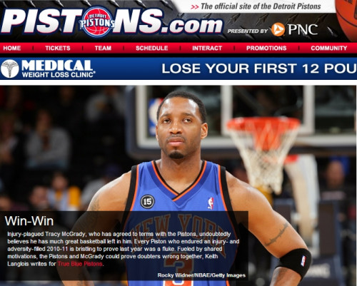 中新網(wǎng)8月11日電 昨日據(jù)雅虎體育報道,特雷西-麥克格雷迪正式以老將底薪合同與底特律活塞簽約1年。