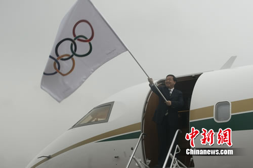 陪同并護(hù)送青奧會(huì)會(huì)旗的中國(guó)香港奧委會(huì)主席霍震霆、南京市市長(zhǎng)季建業(yè)等11名官員、貴賓同機(jī)入境。