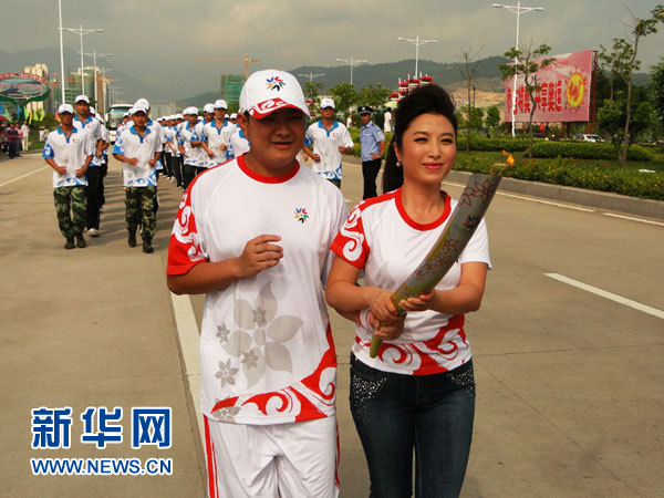 9月12日上午,以“關(guān)注特奧,情燃海西;和諧之光,普照八閩”為主題的第五屆全國特奧會火炬?zhèn)鬟f活動最后一站在福建寧德隆重舉行。日前剛剛被聘任為本屆特奧會愛心大使的著名歌唱家劉媛媛?lián)?1名火炬手之一,攜智障兒童雷孝文共同進(jìn)行了第二棒的傳遞。盡管每一棒接力只有60米的距離,但劉媛媛仍然難掩興奮之情:“真的非常高興,‘愛心大使’和‘火炬手’的雙重身份令我倍感榮幸和責(zé)任。通過火炬?zhèn)鬟f這個儀式,希望更多的人能夠參與到關(guān)注、關(guān)心、關(guān)愛智障孩子的事業(yè)當(dāng)中來。”收火儀式后,劉媛媛與幾名青年志愿者共同放飛了象征著希望與美好的和平鴿。儀式現(xiàn)場,劉媛媛還攜數(shù)名智障運動員演唱了《感恩》、《美好祝!穬墒赘枨