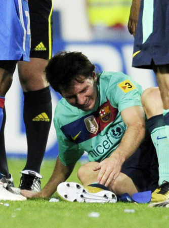 巴薩2-1客場(chǎng)戰(zhàn)勝馬德里競(jìng)技,贏得比賽勝利的同時(shí)也付出了慘重的代價(jià),比賽進(jìn)行到補(bǔ)時(shí)第2分鐘,梅西在帶球過(guò)程中被馬德里競(jìng)技后衛(wèi)烏伊法盧西踩中腳踝受傷,被擔(dān)架抬離賽場(chǎng)。痛苦不已的梅西在擔(dān)架上雙手掩面,而腳踝夸張的浮腫程度也預(yù)示著這次受傷的嚴(yán)重性。盡管烏伊法盧西因此被直接紅牌罰下,也難改梅西右腳踝韌帶損傷的事實(shí)。