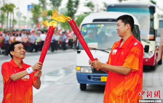 昨日,第16屆廣州亞運會火炬?zhèn)鬟f活動在深圳成功舉行。80名來自各行各業(yè)的火炬手參與了全長8公里的傳遞活動,其中不乏王石、譚晶等名人參與;鹁?zhèn)鬟f起點設在蓮花山頂,終點為蓮花山公園風箏廣場。