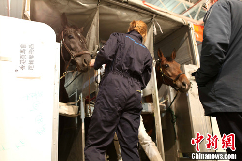 中新網(wǎng)廣州11月4日電 (唐貴江 張瑞)記者今日從廣州白云出入境邊防檢查站獲悉,廣州亞運(yùn)會(huì)馬術(shù)比賽部分馬匹于11月4日凌晨從廣州白云國際機(jī)場入境,共有9匹賽馬和6名韓國籍馬童一同抵達(dá)廣州。
