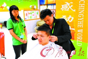 “一般來(lái)說(shuō),我習(xí)慣在比賽前剪頭發(fā),賽前整理一下發(fā)型,會(huì)讓自己在賽場(chǎng)上更有精神,也算是做好比賽的準(zhǔn)備吧!标愐槐f(shuō),他一邊理發(fā),一邊和記者聊了起來(lái),“基本上平時(shí)我都會(huì)自己抓頭發(fā),用一些發(fā)蠟或者是發(fā)膠,讓頭發(fā)立起來(lái),讓自己在賽場(chǎng)上看起來(lái)很有精神!