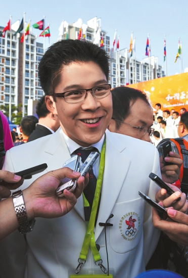 昨天下午,中國香港代表團在運動員村的升旗廣場舉行了盛大的升旗儀式,包括香港代表團團長劉掌珠、副團長霍啟剛在內(nèi)的近百名運動員和官員出席了本次升旗儀式。華西都市報記者獲準(zhǔn)進入運動員村升旗廣場參加了本次升旗儀式,在升旗儀式之后,香港代表團副團長霍啟剛接受了華西都市報記者獨家專訪。